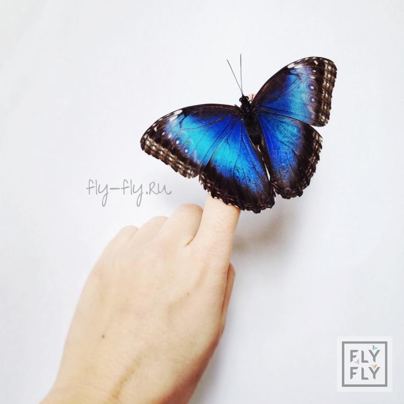 Бабочка "Морфо" - одна из самых красивых бабочек в мире! Размах крыльев до 16 см. Бабочка небесно-синего цвета с металлическим отблеском.