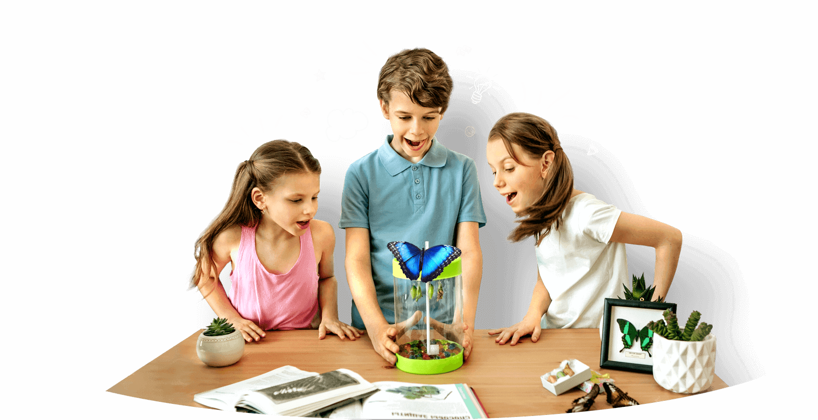 Это уникальный развивающий подарок для ребенка, с помощью которого можно вырастить настоящих тропических бабочек дома и наблюдать за их жизнью.
